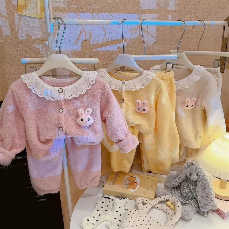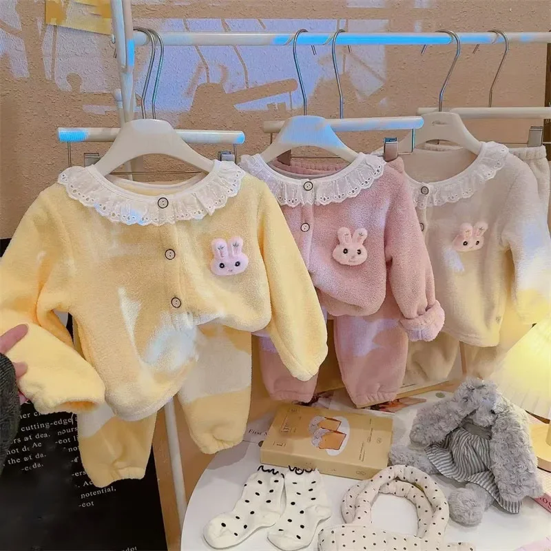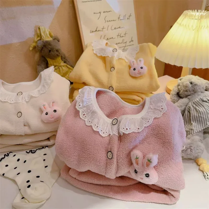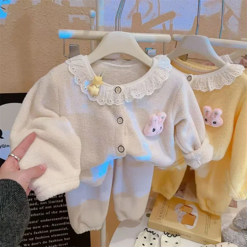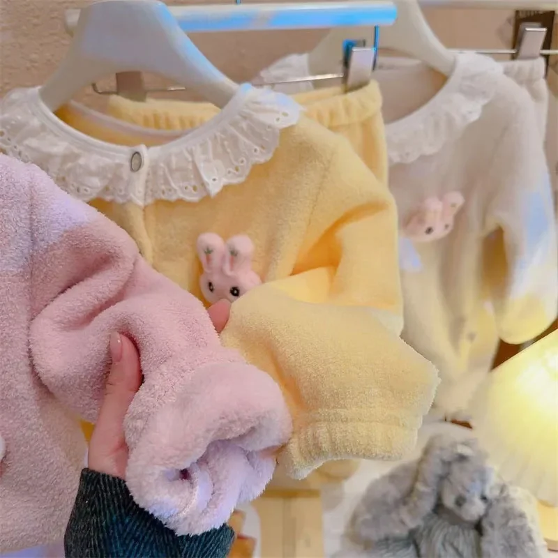 Keep your little one cozy with this adorable plush pajama set. Designed for girls, it features a cute cartoon princess and lace details. Made from soft, warm fabric, perfect for autumn and winter nights. Lightweight yet insulating, ideal for sleeping or lounging at home. Comfortable fit allows freedom of movement for active toddlers. Easy to put on and take off, convenient for parents. Stylish and playful design makes bedtime fun. Suitable for newborns and young children of various sizes. Durable stitching ensures long-lasting wear. A cozy and charming addition to any baby girl’s nightwear collection.