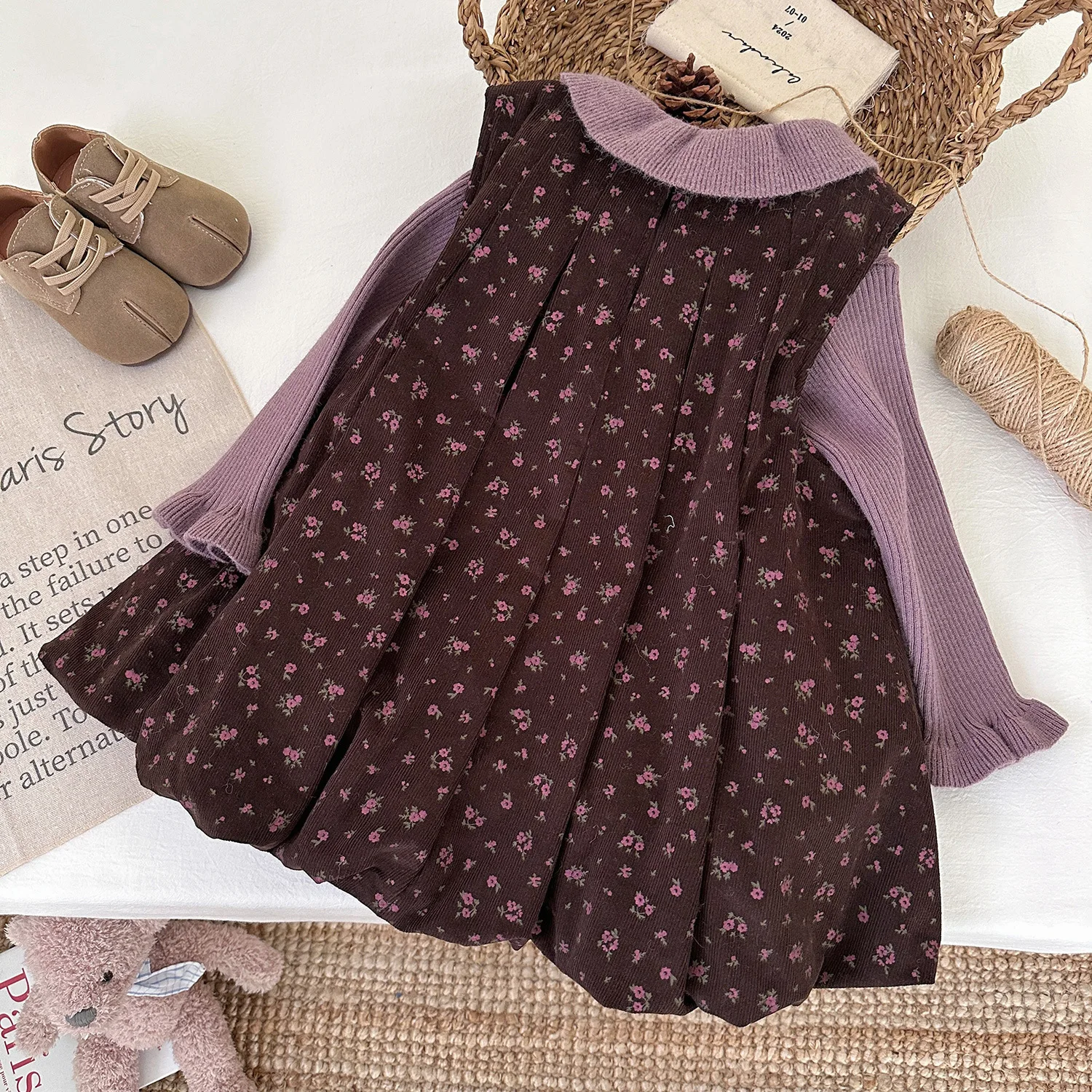 This adorable 2-piece outfit is perfect for girls during winter. Includes a soft cotton ruffle undershirt and a matching floral printed bubble hem dress. Made from gentle, breathable fabric suitable for delicate skin. Lightweight yet warm, ideal for indoor and outdoor wear. Comfortable fit allows freedom of movement for active toddlers. Stylish design adds charm and sophistication to everyday wear. Suitable for young girls of various sizes. Easy to layer with jackets or cardigans for colder days. Durable stitching ensures long-lasting wear. A charming and practical addition to any little girl’s winter wardrobe.