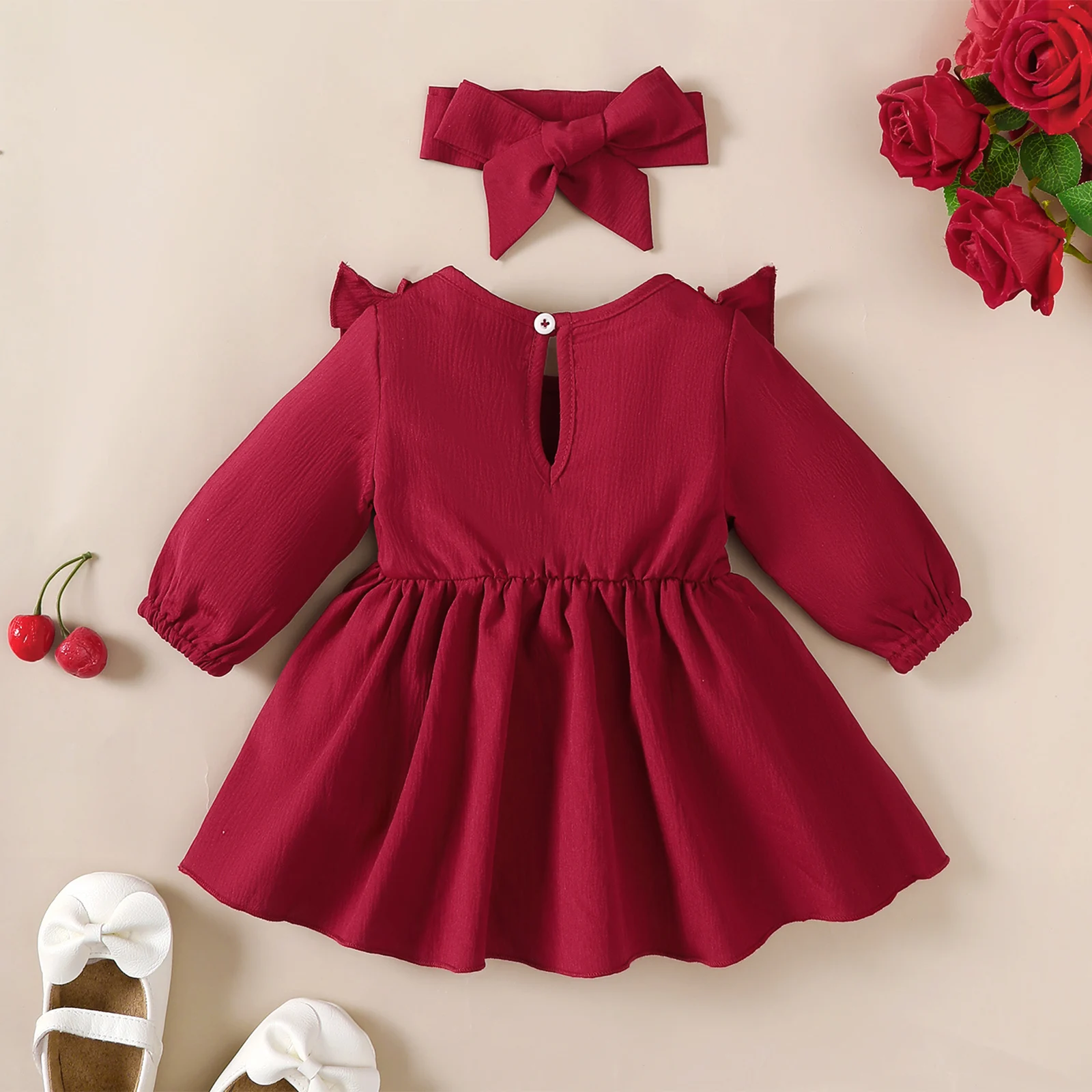 This adorable autumn dress is perfect for baby girls aged 0-18 months. The set includes a long-sleeve dress and a matching headband. Soft, comfortable fabric is gentle on delicate skin. Ruffled edges add a cute and stylish detail. A bow accent completes the charming look. Ideal for holiday parties, photoshoots, or festive occasions. Lightweight and breathable, allowing comfort and easy movement. Easy to put on and take off, perfect for parents. Designed to combine style and practicality for little ones. A delightful addition to any baby girl’s seasonal wardrobe.